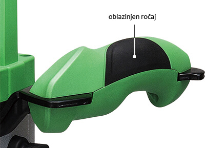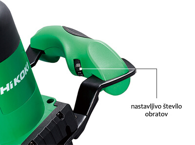 - Ima vklopno stikalo z regulacijo hitrosti in protivklopno zaščito, ki preprečuje nenamerni vklop ter omogoča postopno povečanje moči za mešanje brez brizganja materijala.