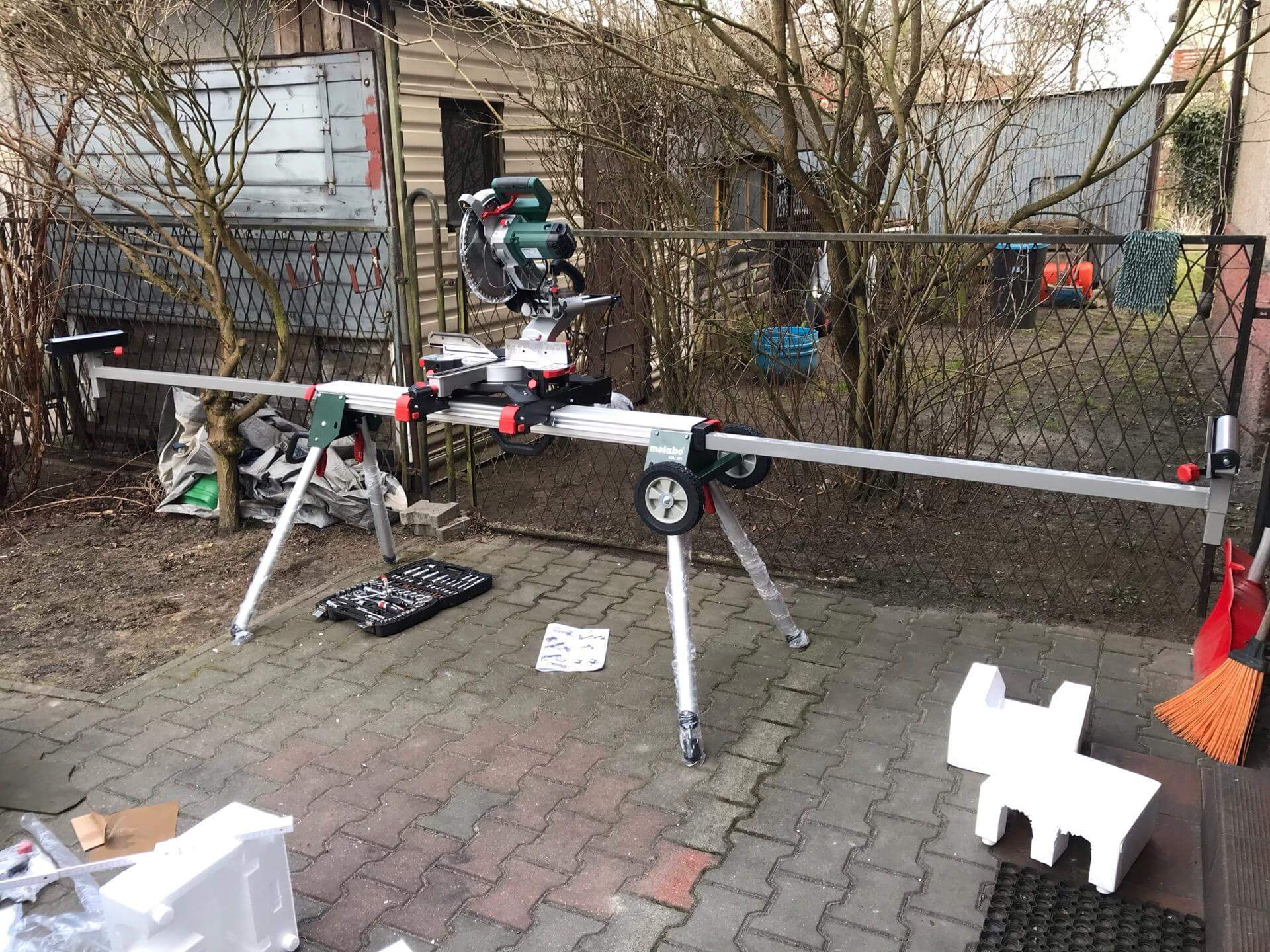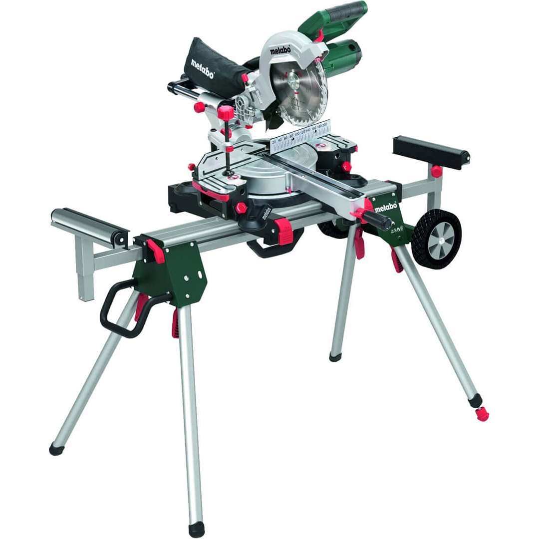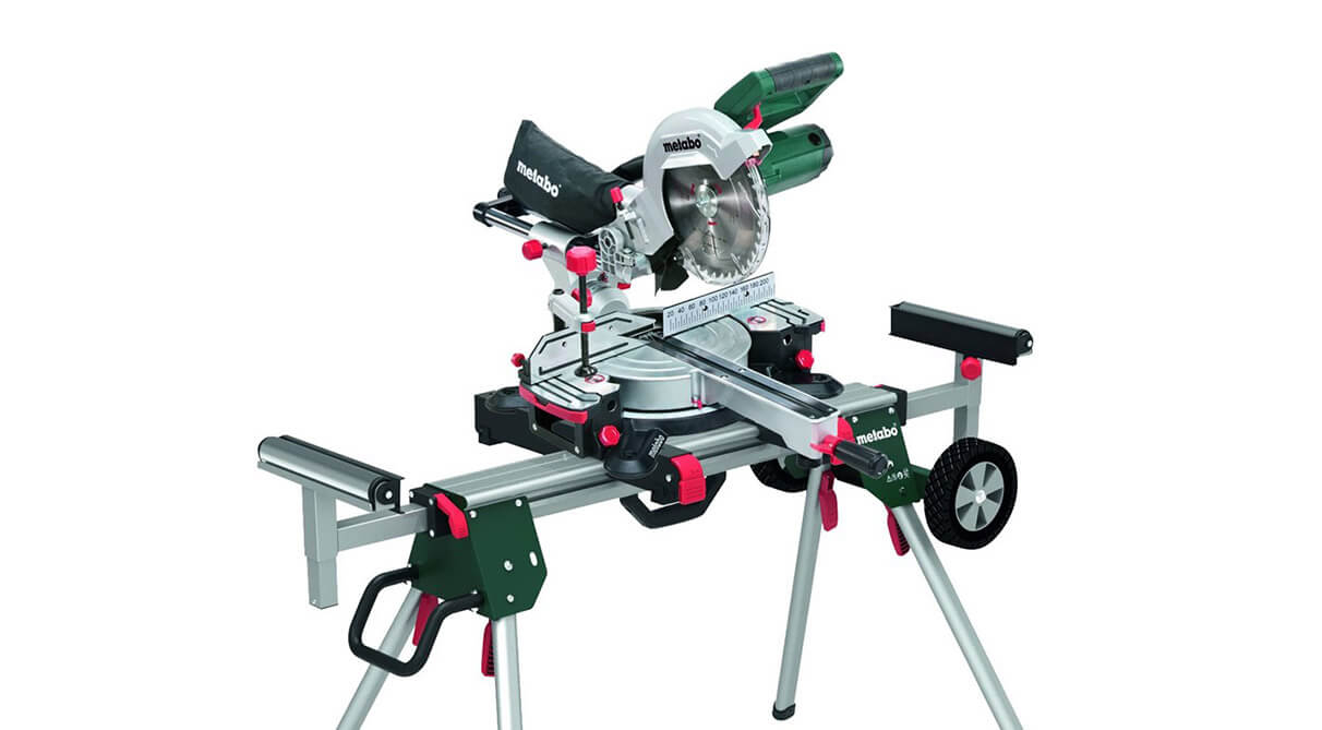 Zajeralna žaga METABO 305 Mere žage : 850 x 515 x 615 mm Stojalo/delovna miza KSU 401 Lahko in robustno stojalo za zajeralne žage s funkcijo vozička za mobilno uporabo tudi z montirano žago |
